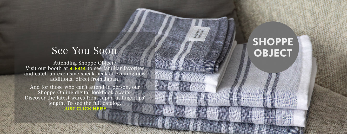 While exploring our fine decor, dining essentials, and wholesale canvas shoes from Japan, contact our helpful team for in-depth guidance at any time. We will gladly walk you through material specifics and production processes, and teach you more about the workshops and artisans who make our beautiful wares.